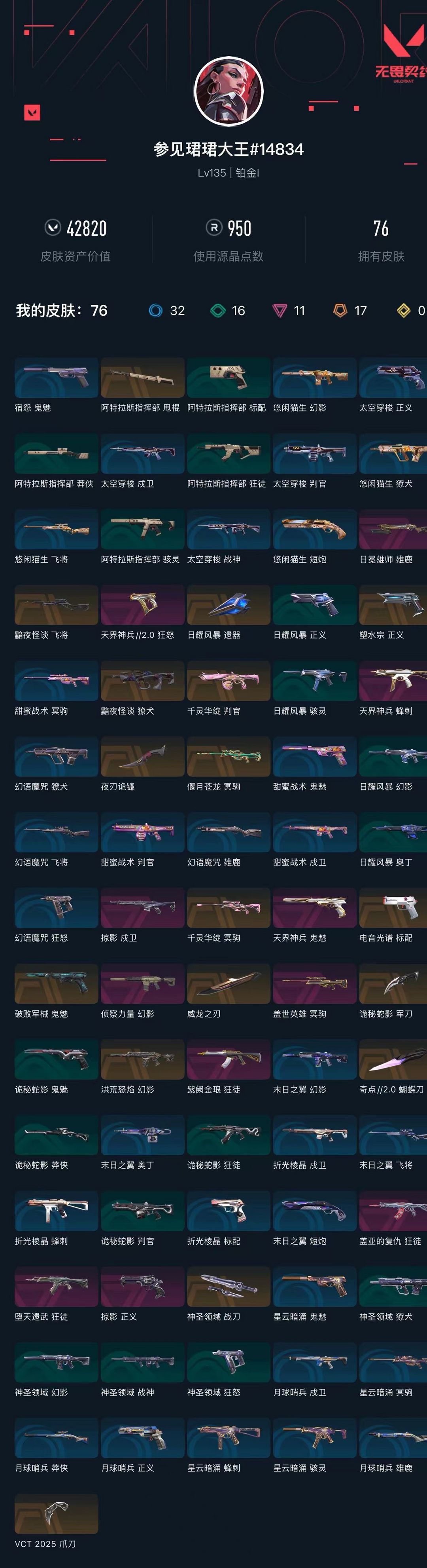 开挂必起诉✅可排位VCT爪⭐古神套⭐弃王紫金盖亚ak⭐侦察流脓m4⭐青龙莲花驹⭐塑水宗正义⭐奇点2刀