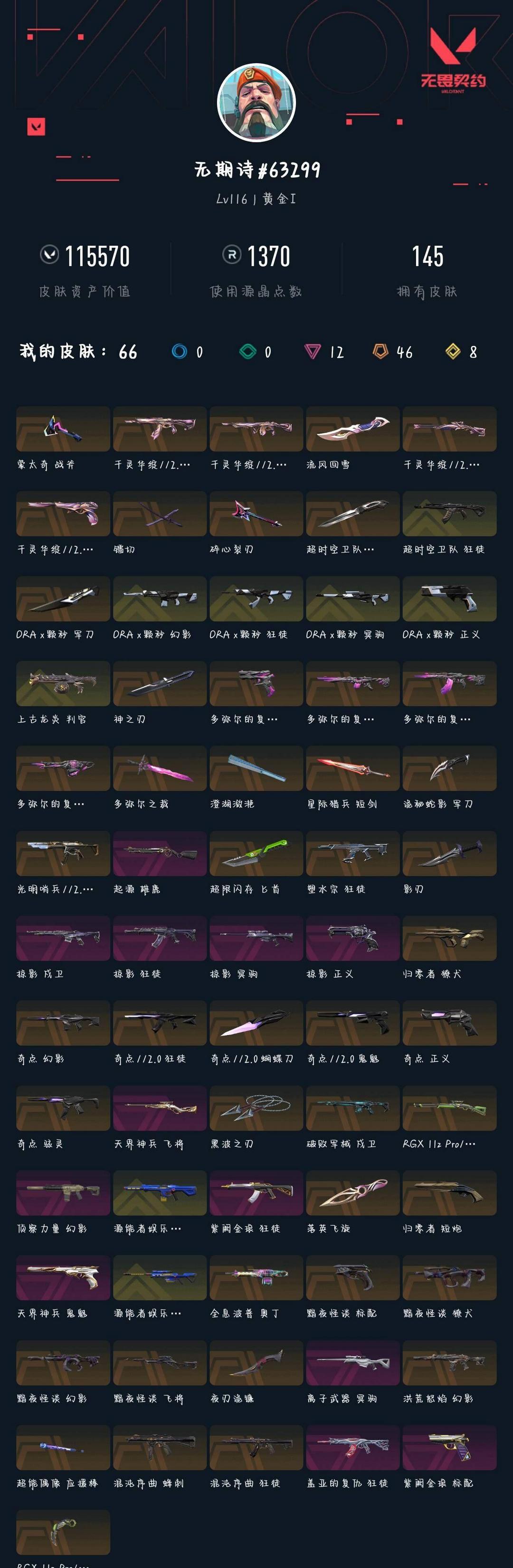 武器皮肤数量:145