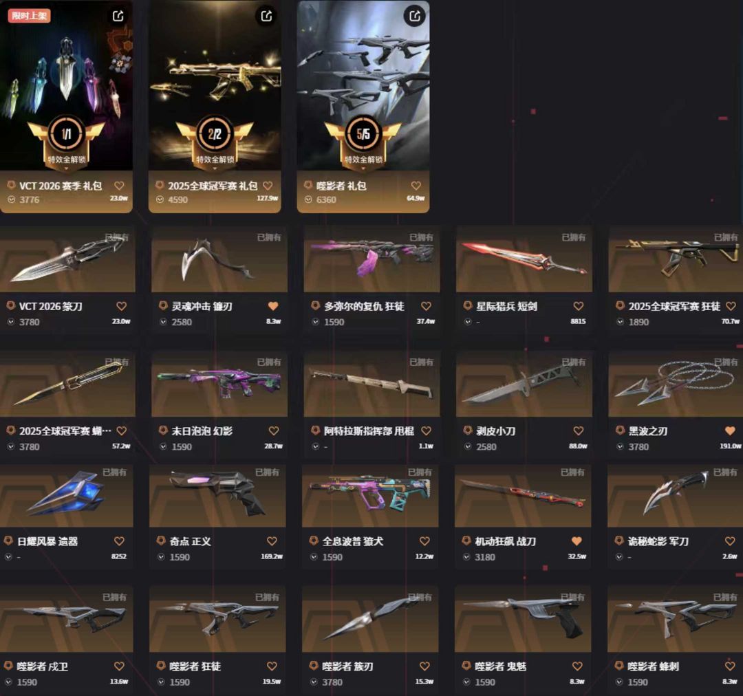 12万库vct篆刀灵魂冲击✨25冠军套噬影套✨23冠军超时空多弥尔混沌离子塑水ak✨侦察末日魔蛇m4