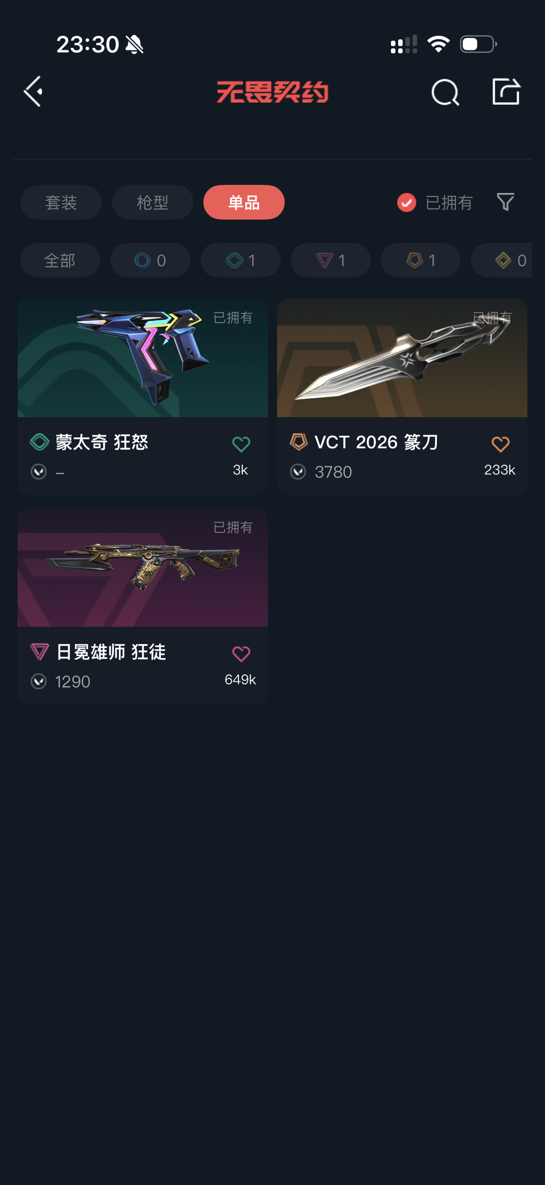 可排位⭐VCT2026篆刀⭐日冕雄师狂徒⭐精品小号⭐