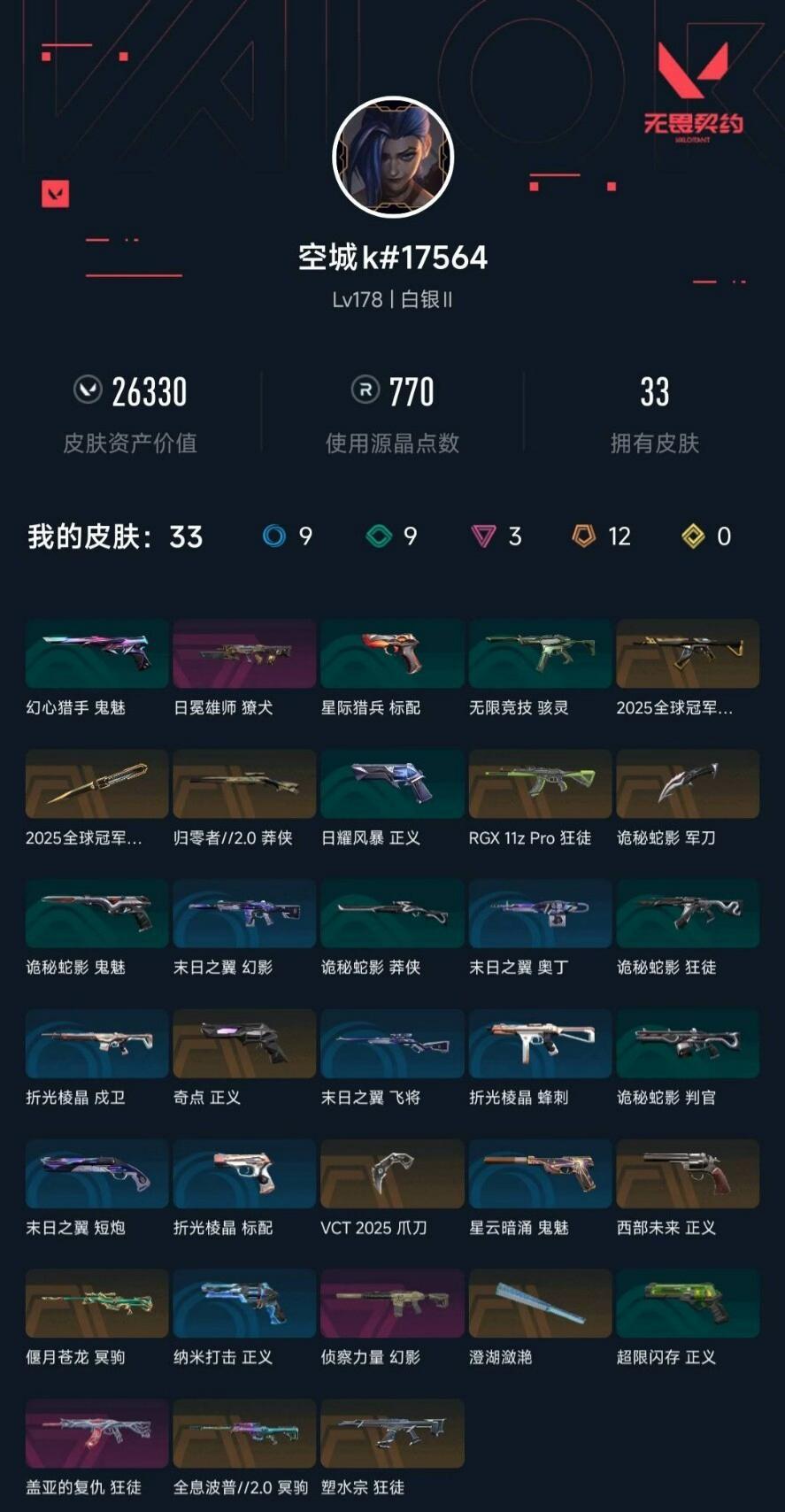 武器皮肤数量:33