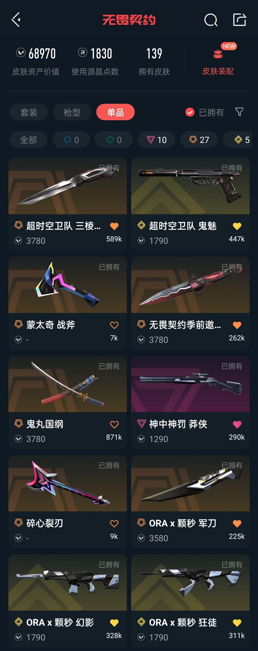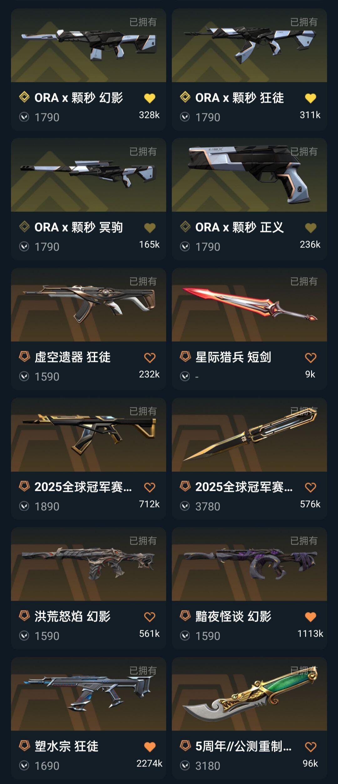 ORA颗秒套2025冠军套悲悯三棱刀显卡掠影盖亚塑水宗光明狂徒紫金爪刀黯夜流脓幻影显卡爪刀超时空鬼魅