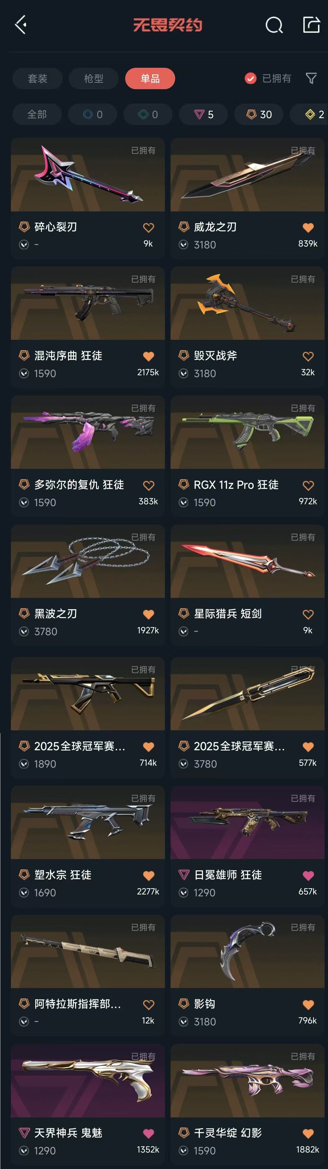 可排10W库存❤25冠军套❤黑波之刃威龙之刃显卡爪镭切影钩❤混沌显卡猫猫等10把狂徒❤莲花幻影❤