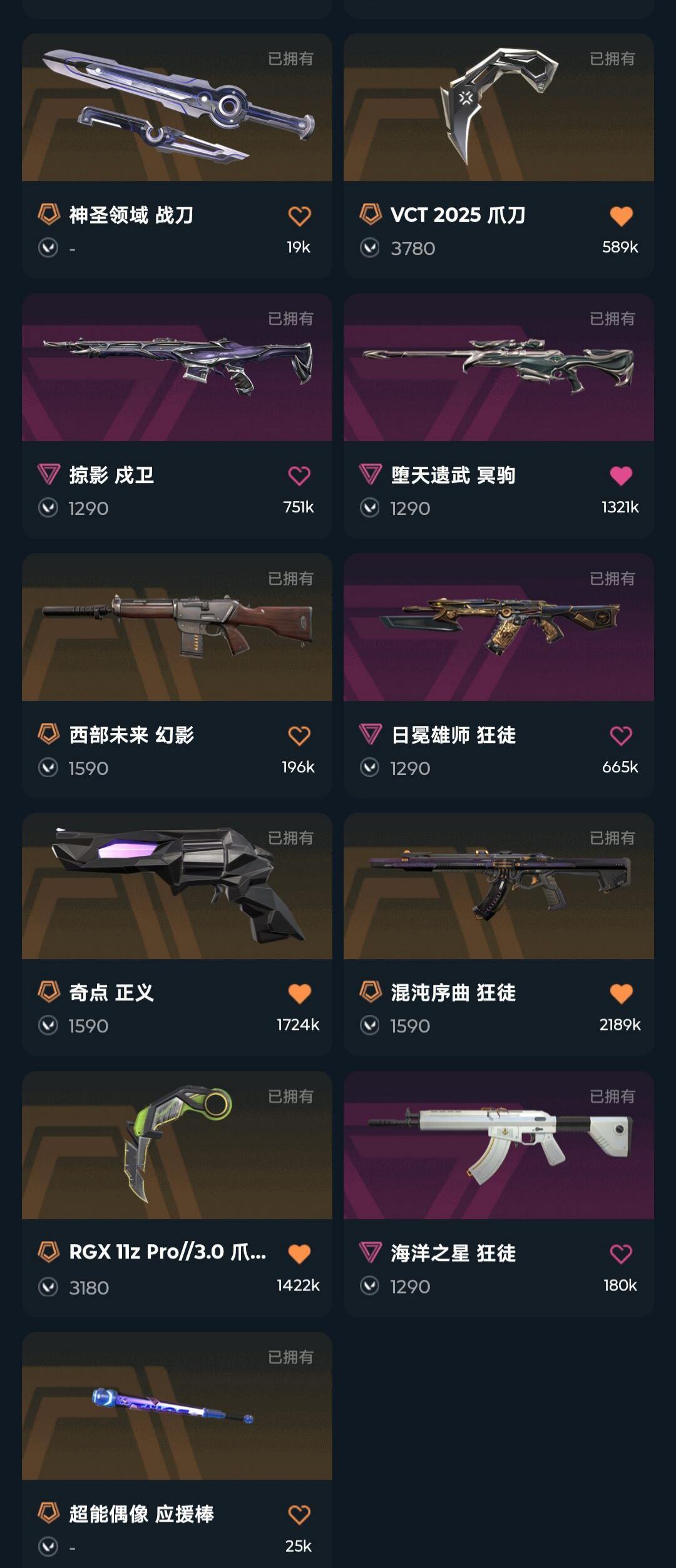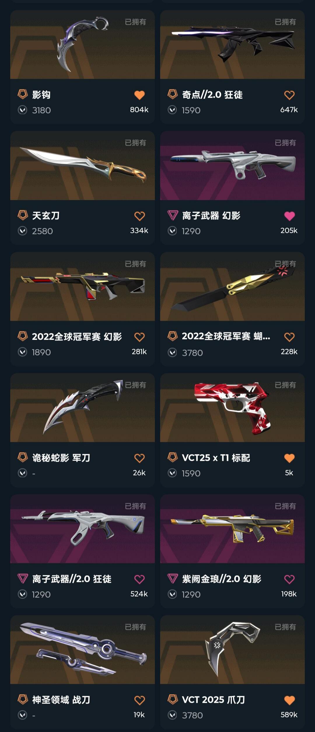 2022冠军套VCT2025爪刀三棱刀紫金爪刀影钩天玄刀显卡爪刀超时空狂徒鬼魅显卡混沌狂徒