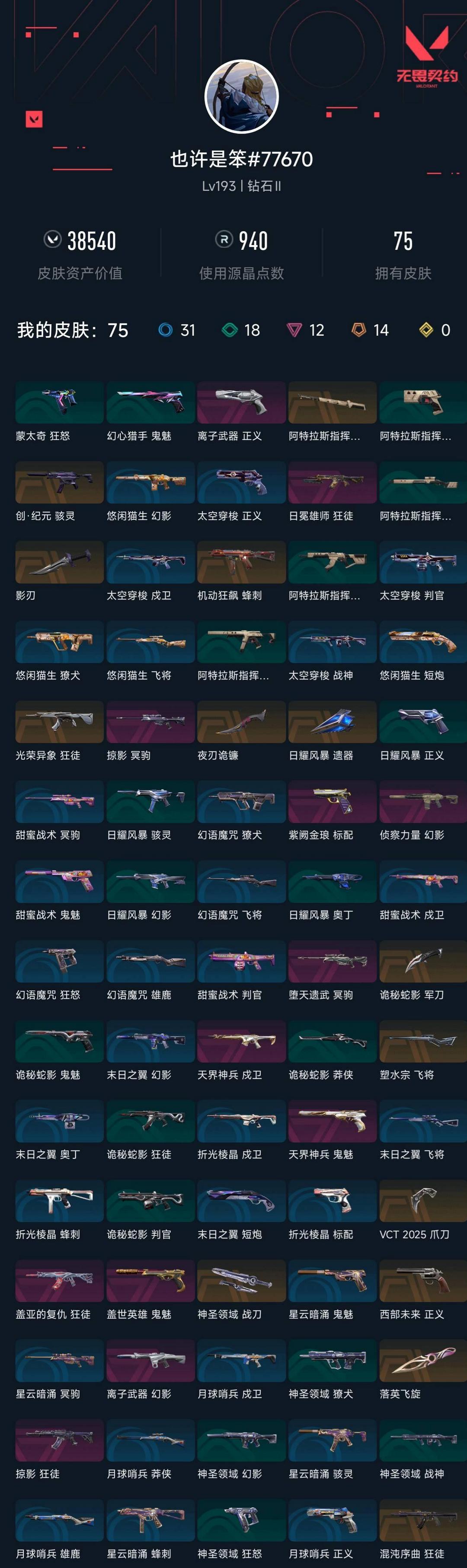 武器皮肤数量:75