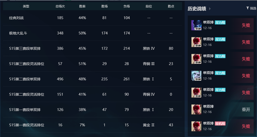 艾欧尼亚❤️500皮可排位❤️单双黑铁❤️灵活青铜❤️匹配负胜率❤️极品虐菜号