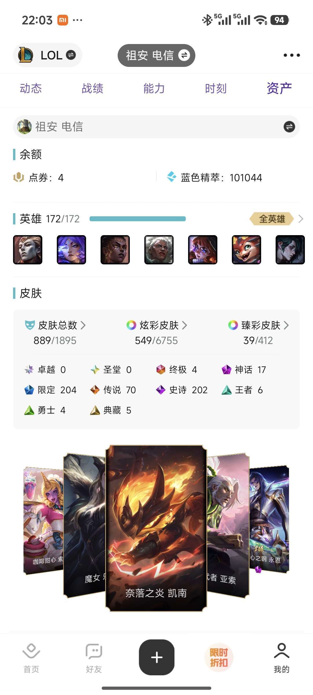 全英雄,各种优质限定,如早期龙年限定 神龙烈焰 海克斯系列 梦游仙境等,欢迎老板们下单体验!