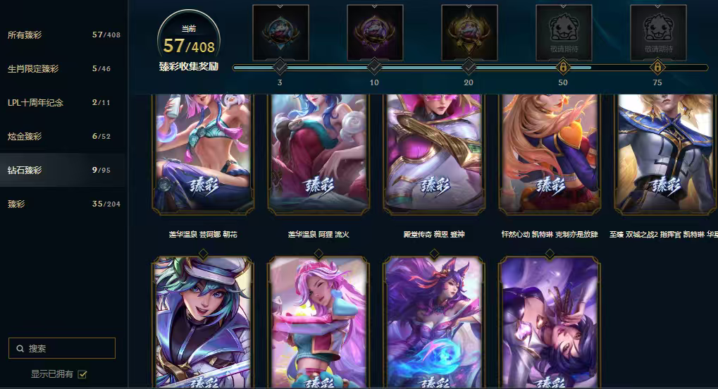 联盟三区海斗爽玩!朝花芸阿娜2900皮/原皮1252/炫彩1660大师级成就紫色标龙瞎EDG臻彩全套