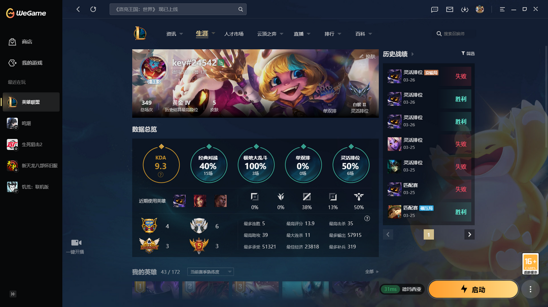 游戏区服:英雄联盟-联盟五区-德玛西亚