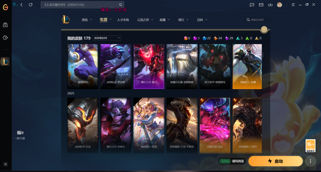 装备描述:||精品炸鱼号||179皮肤||云顶之奕||亚索黑夜使者||亏桑提心之刚||霸天剑魔||小小格纹||小小贝蕾亚||小小女枪