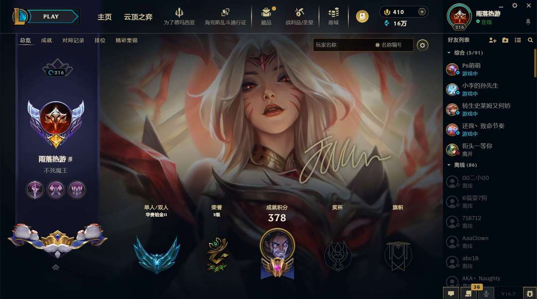 段位:216级 华贵铂金II