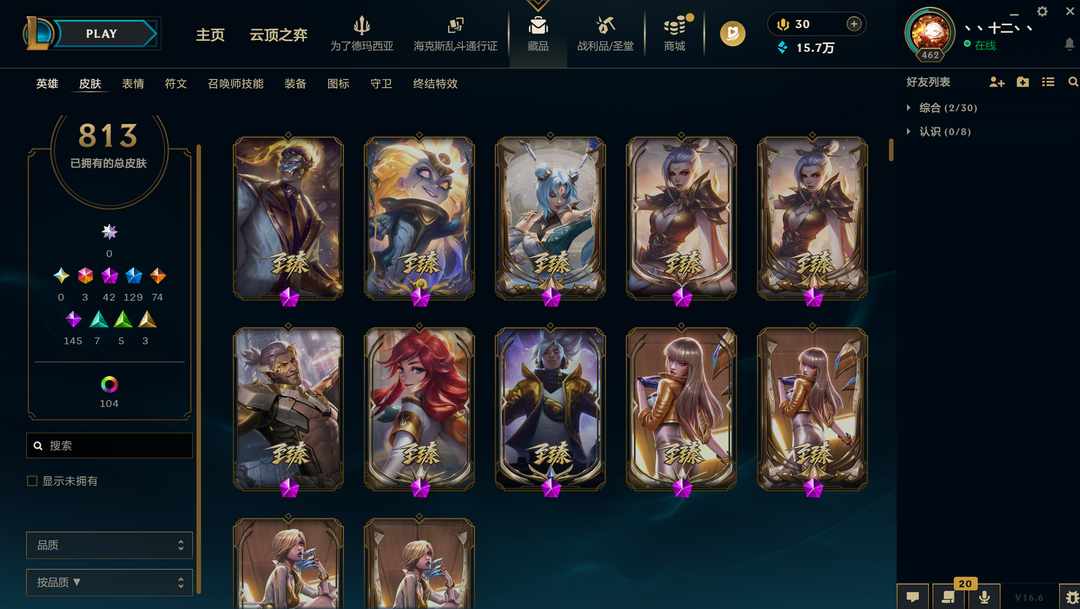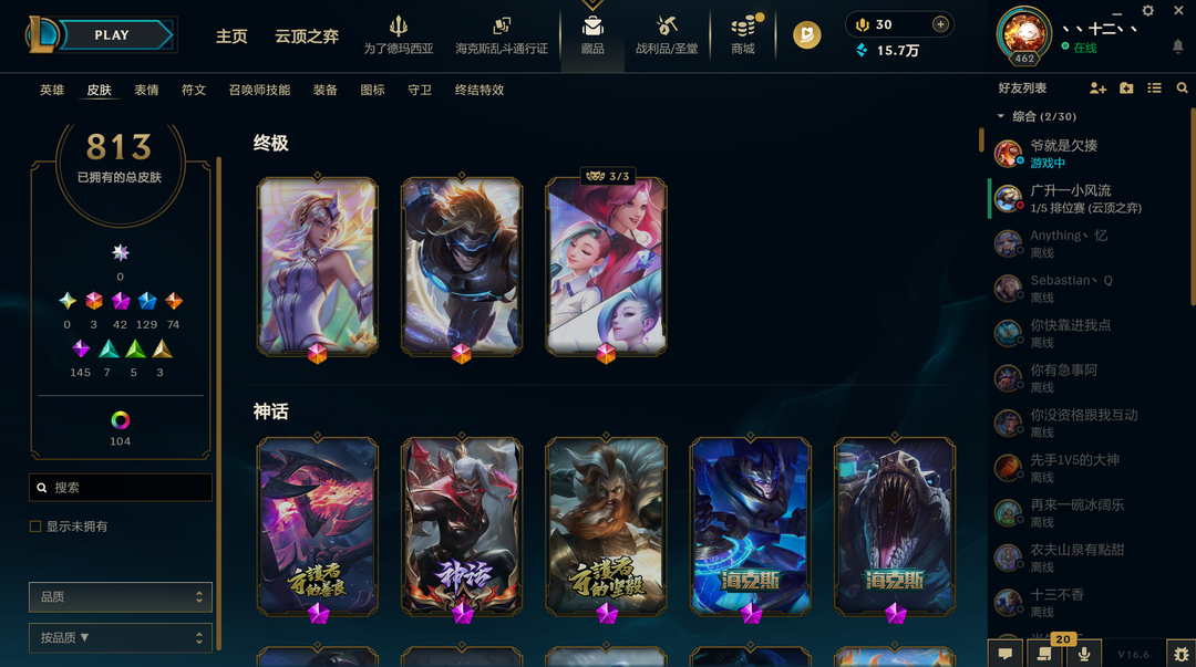 (1046)摄魂龙瞎哥特萝莉奥斯曼大帝船长813原皮+30臻彩+3终极+42神话+129限定