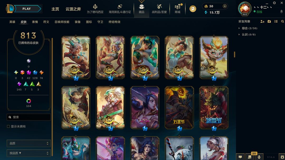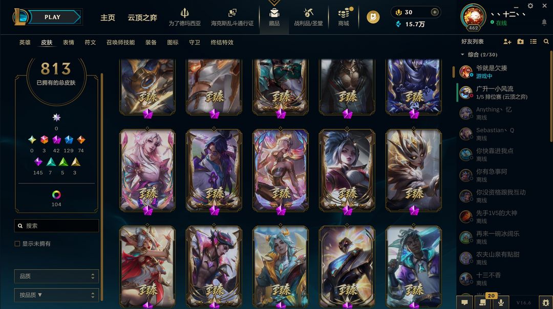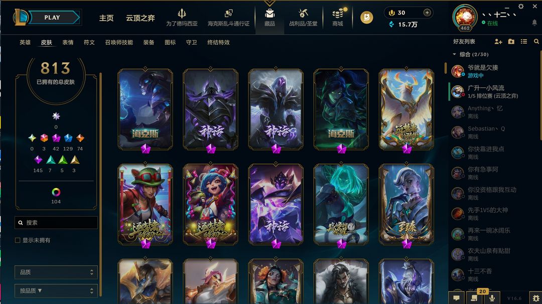 装备描述:(1046)摄魂龙瞎哥特萝莉奥斯曼大帝船长813原皮+30臻彩+3终极+42神话+129限定限定全英雄 我cf也上架了wegame可能被挤游戏不会