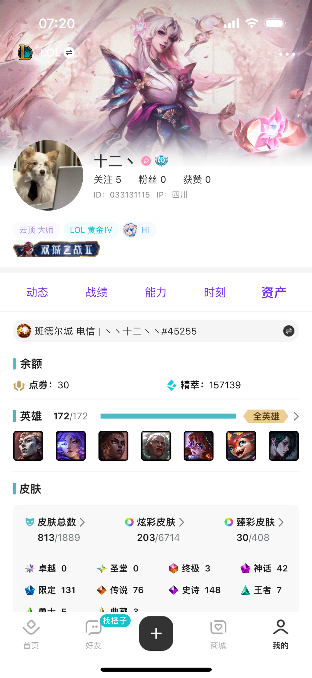 段位:462级 荣耀黄金IV级 荣耀黄金IV