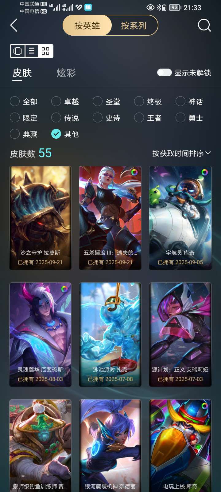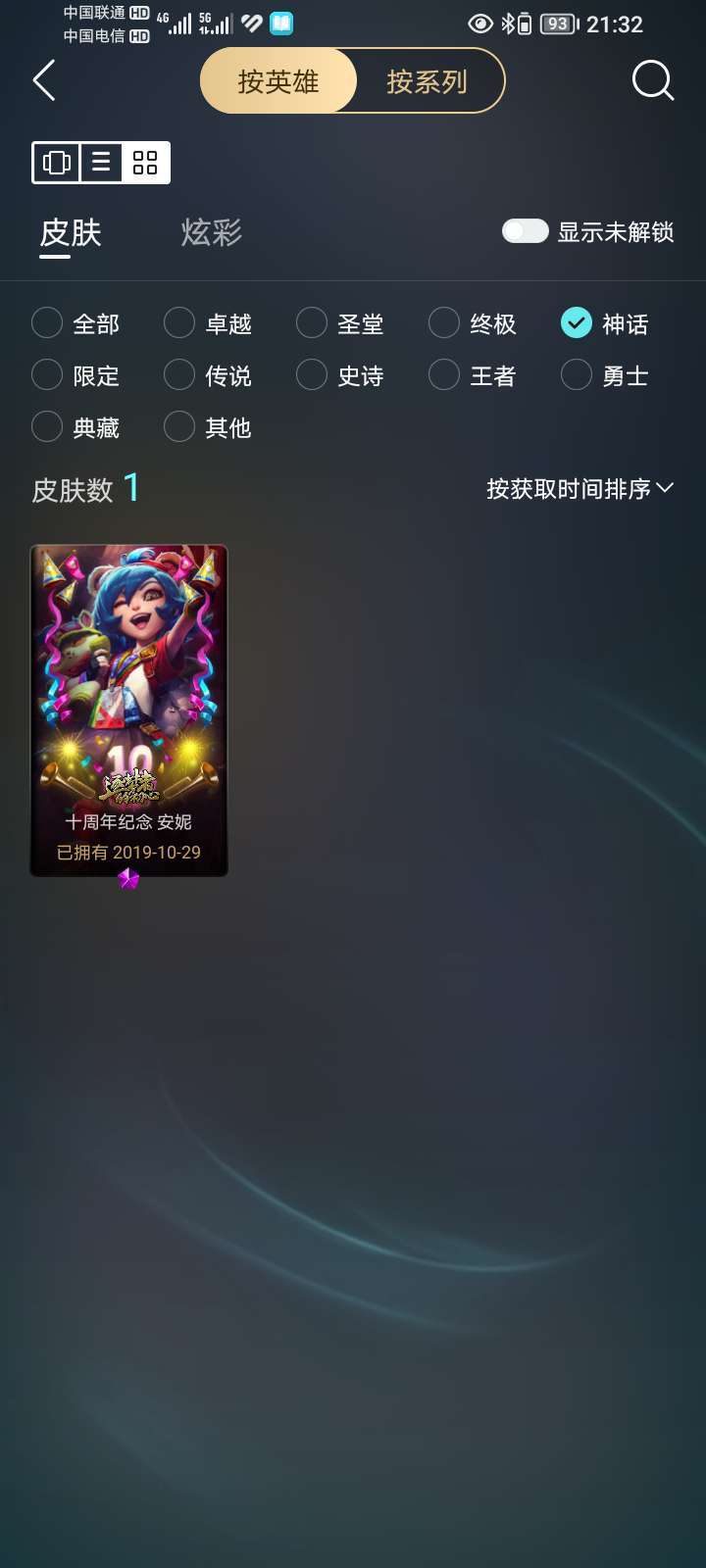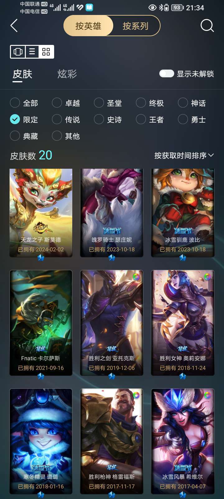 联盟二区,可打排位,所有模式可玩,总皮肤110,神话1,限定20,传说16,史诗18个