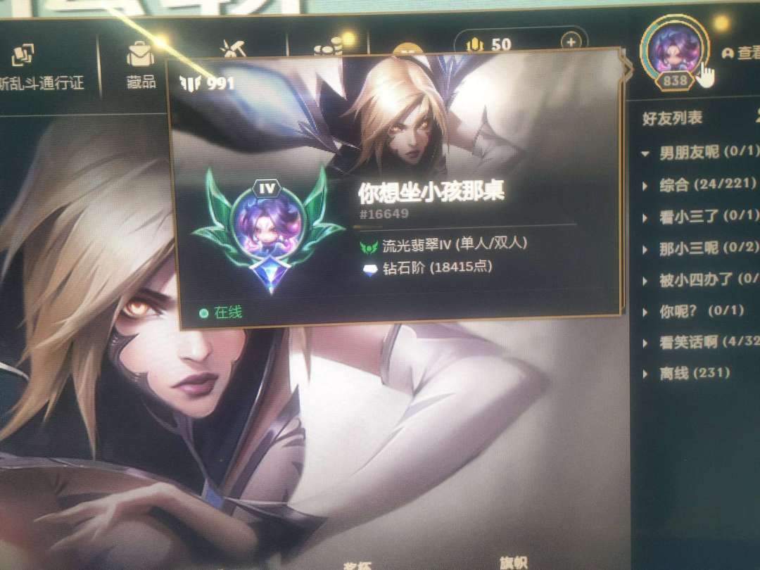段位:838级 流光翡翠IV