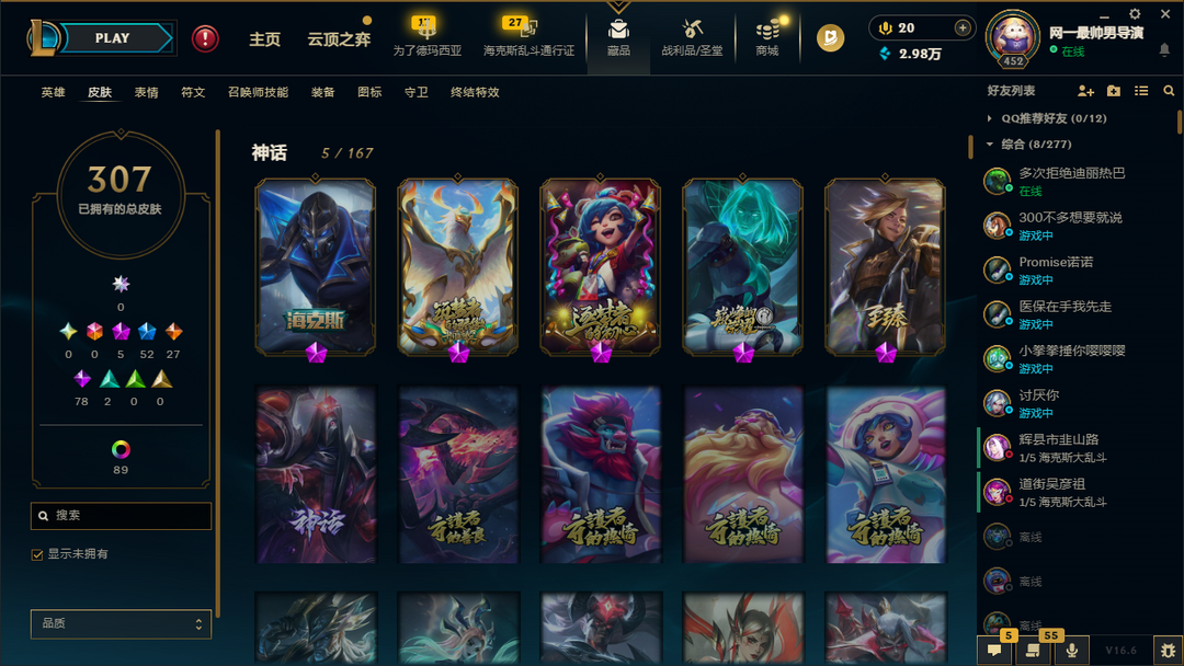 装备描述:本游戏账号英雄多,皮肤多。注意事项:不要恶意挂机,发布不文明语言