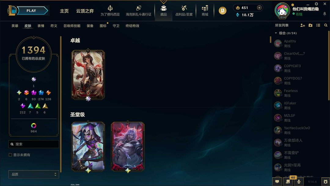 1400原皮❤殿堂传奇阿狸圣堂佛耶戈金克斯❤ig冠军套炽天使永恩圣天龙踏雪寻梅❤93神话至臻126传