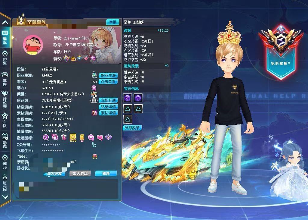 装备描述:【车王冠军皇冠】16S=T3龙行八荒❤️玉麒麟❤️影龙烛龙-冰夷-青龙❤️耀虎❤️雪凝10❤️暴天甲奥丁❤️62万魅力超核