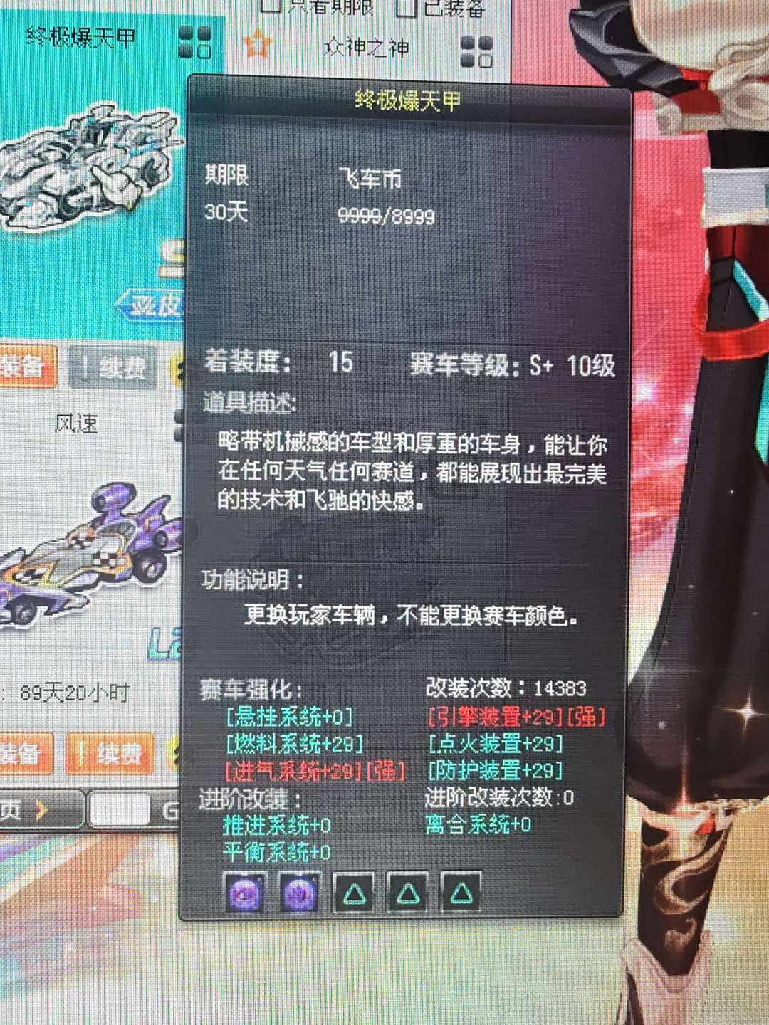 装备描述:新车踏月全29三4S全部满改双4宠物有甜心公主强化10