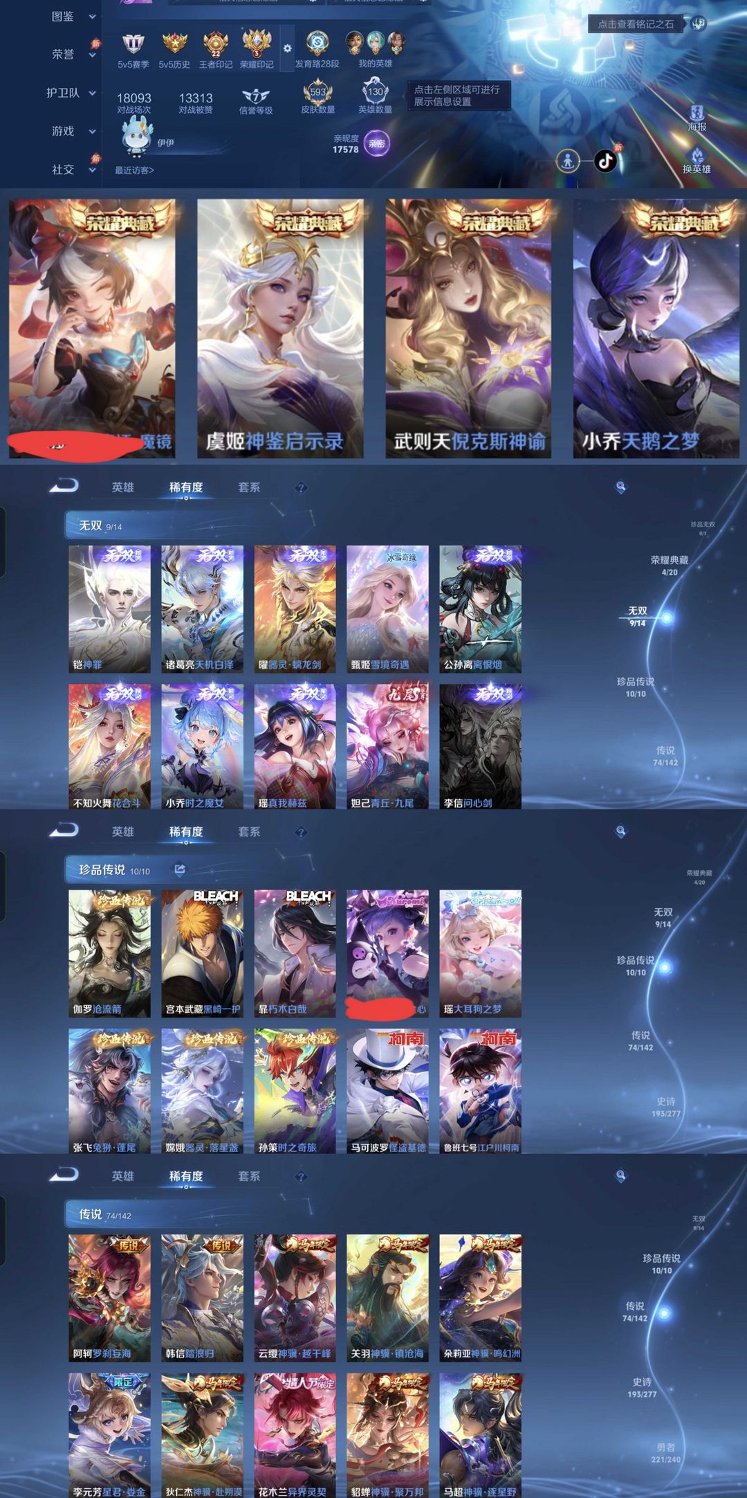 限制: 租号2次及以上 | 撤单率<49%才可租用此帐号装备描述:时间到了还登录白玩或者顶号全部改密拉黑处理永不解除,顶号机器会秒禁玩改密,顶号不仅拉黑还没得玩,赚三两块不容易,请理解谢谢。 ❤❤❤❤❤❤❤❤❤❤❤❤❤❤❤❤❤❤ 请勿开挂,挂机,送头,骂人,撤单后游戏等如有违规永久拉黑永不解除。 重置二级密码不要费劲了,号主每天都会上号查看,多行不义必自毙,人在做天在看,多做好事多自律,少做缺德事。 请勿挂机送头辱骂等如有违规永久拉黑,意外掉线可理解 该号英雄130个皮肤593个,典藏5个,无双9个,珍品传说10个,星传说5个,传说74个,史诗193个,祝你游戏愉快~
