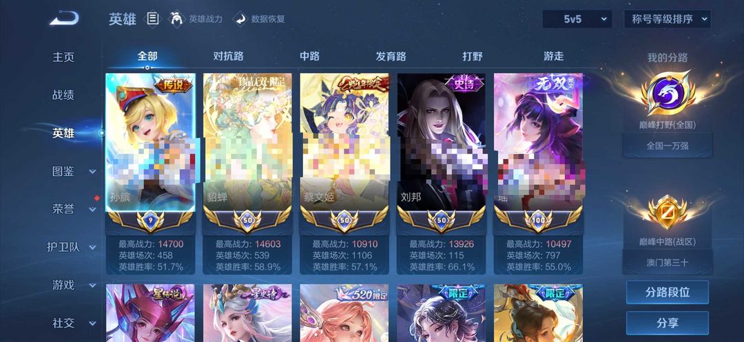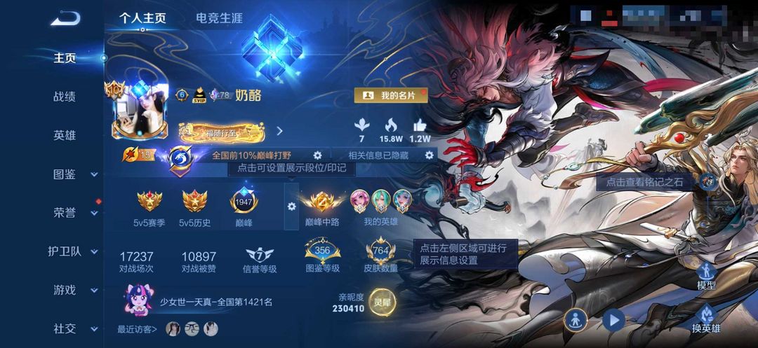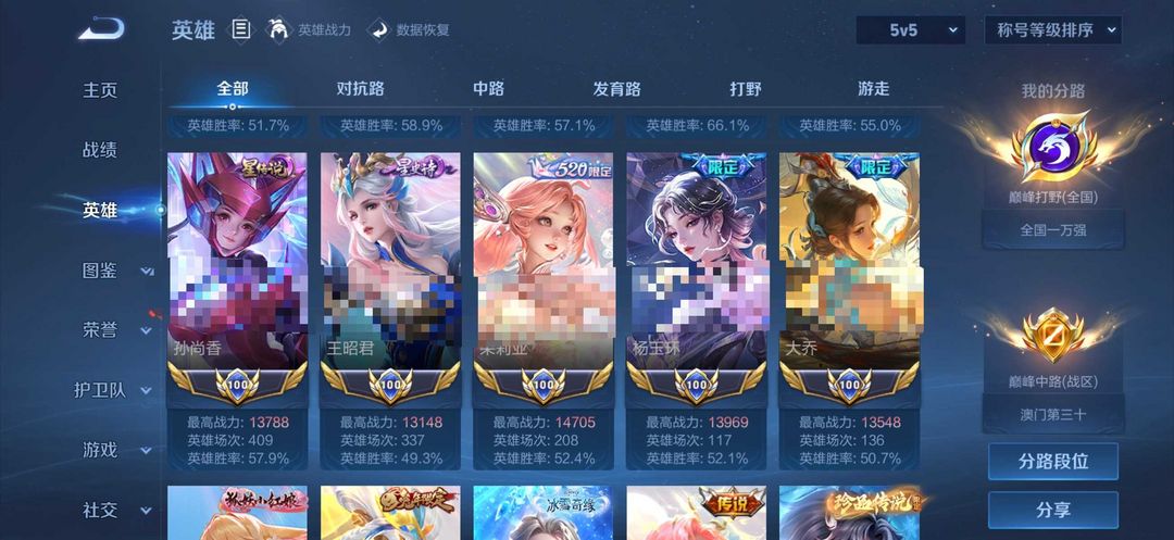 荣耀V10不禁言❤766皮历史11国服❤满隐藏灵宝满星元满小兵满按键44满天幕❤图鉴356级