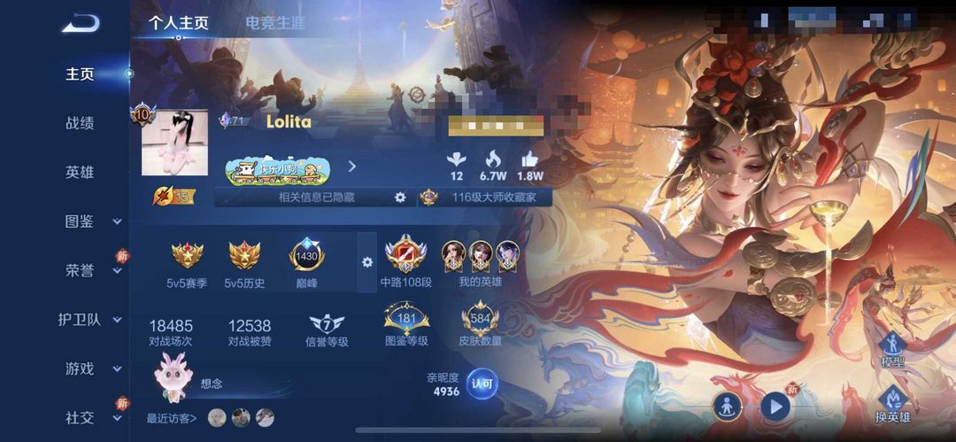【贵族10 584皮肤不禁言】❤️108段在榜省标中路❤️历史10国服貂蝉2万战力火舞可排位