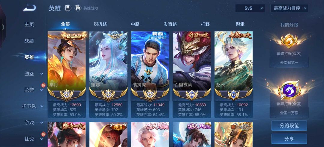 三月在榜小国标赵云+省标露娜玄策老虎❤️巅峰1k8历国服裴擒虎刘备至尊宝孙悟空诸葛亮