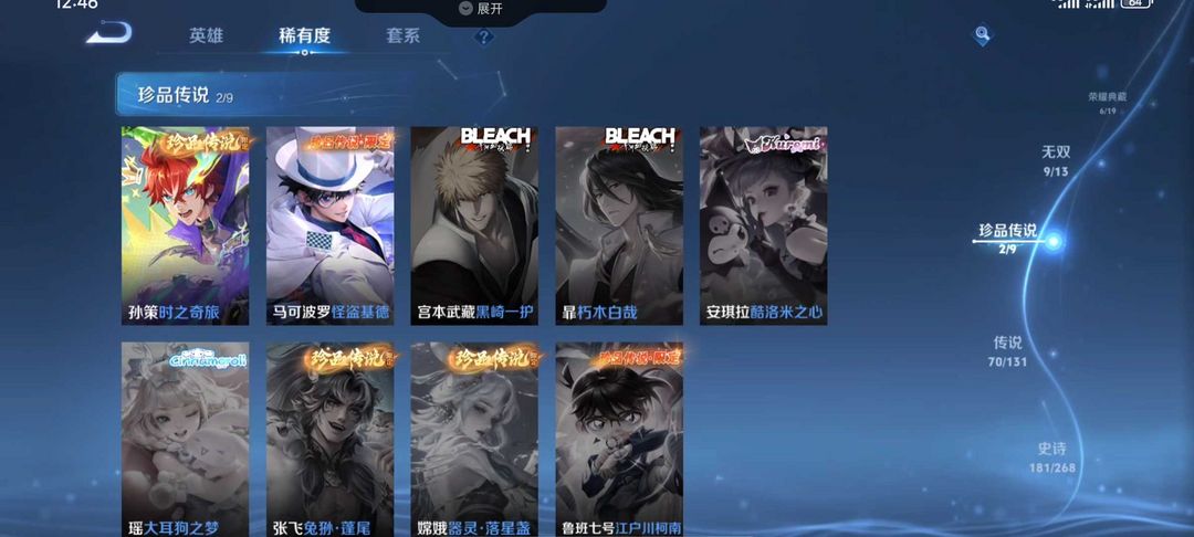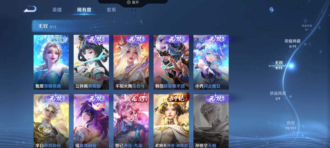 60段打野60段发育 怪盗基德孙策时之奇旅✨九无双八十款传说皮肤七个典藏五星传说50按键