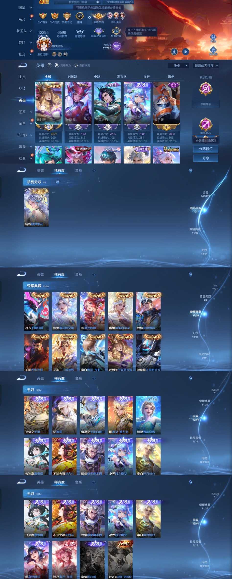 限制: 租号2次及以上 | 撤单率<49%才可租用此帐号装备描述:时间到了还登录白玩或者顶号全部改密拉黑处理永不解除,顶号机器会秒禁玩改密,顶号不仅拉黑还没得玩,赚三两块不容易,请理解谢谢。 ❤❤❤❤❤❤❤❤❤❤❤❤❤❤❤ 请勿开挂,挂机,送头,骂人,撤单后游戏等如有违规永久拉黑永不解除。 重置二级密码不要费劲了,号主每天都会上号查看,多行不义必自毙,人在做天在看,多做好事多自律,少做缺德事。 该号英雄129个皮肤640个,珍品无双1个,典藏12个,无双12个,珍品传说9个,星传说7个,传说101个,史诗218个,祝你游戏愉快~