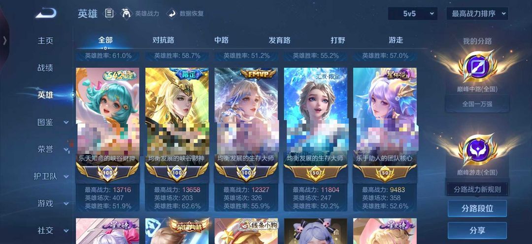 可以排位荣耀贵族 776皮肤顶级女号 历史8小国标 25天幕 17星源 7小兵 皮肤全秒