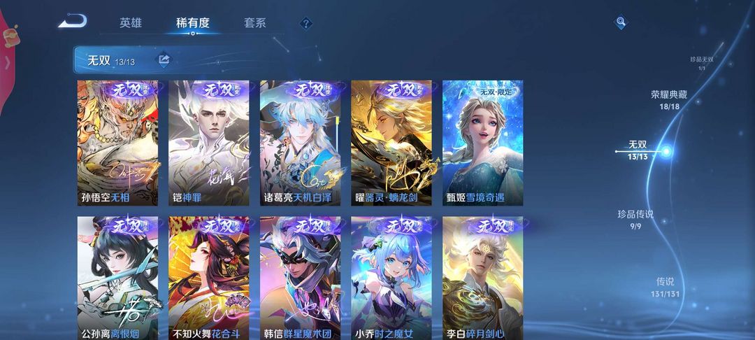 无双 v10 多戳戳女号⚡️孙悟空无相多万战金标辅助打野✨历史巅峰万强✨满典藏满珍品满传说✨慕夏全套
