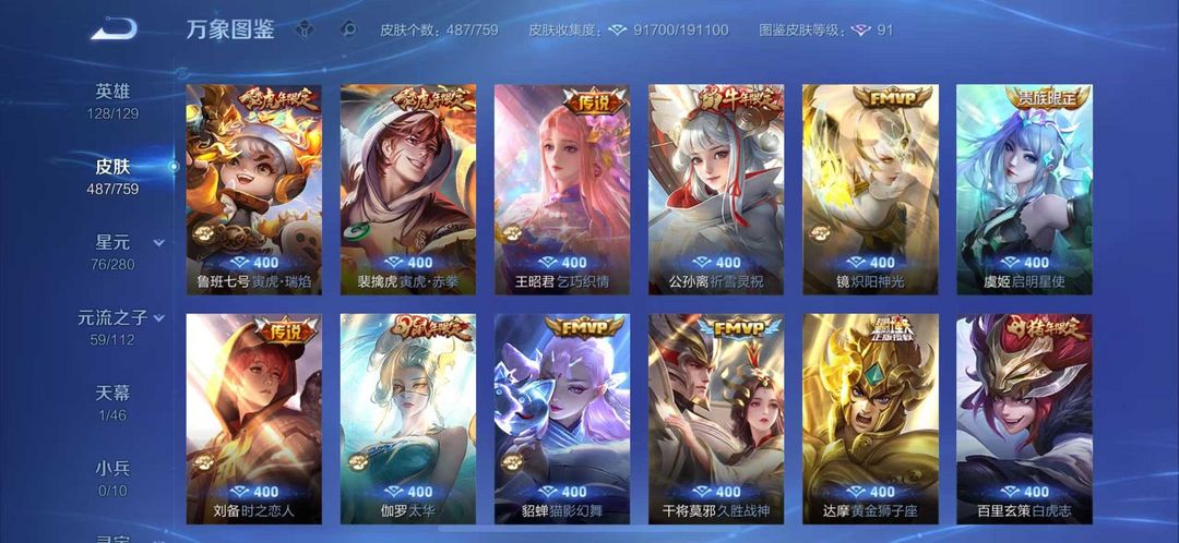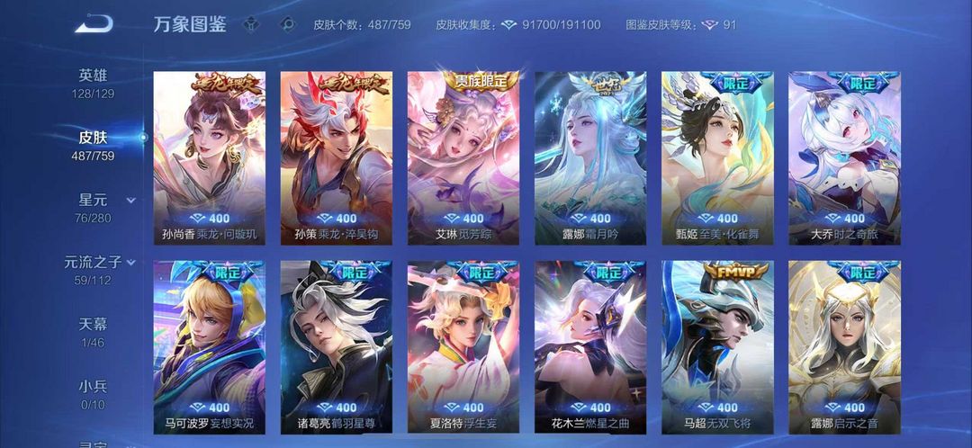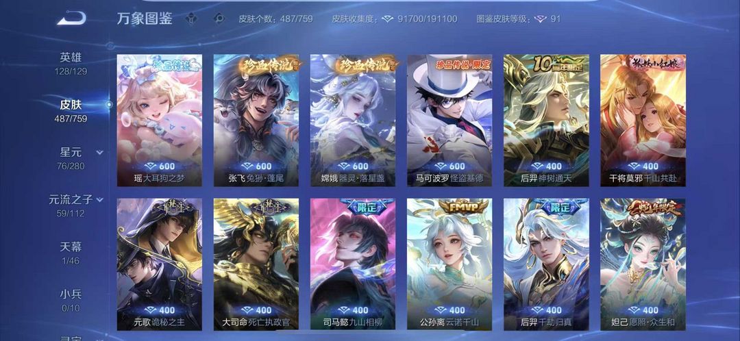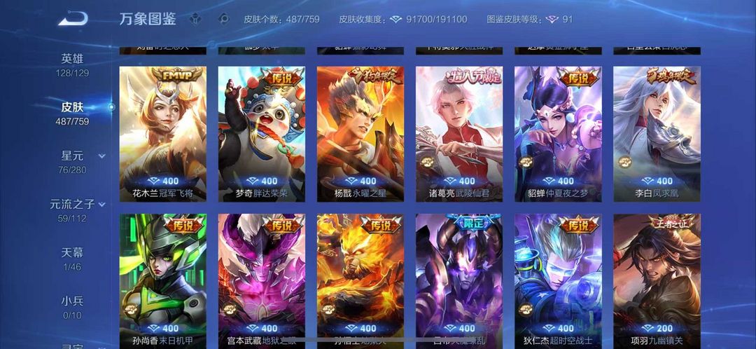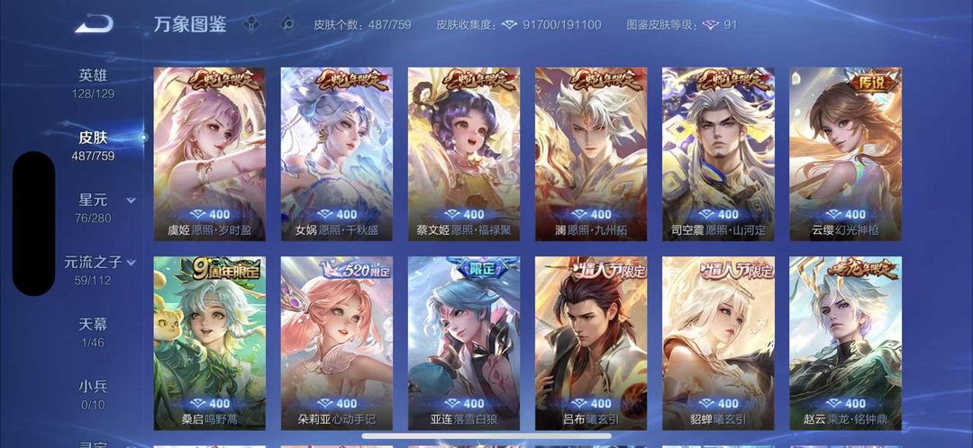 487皮肤❤国服曹操打野52段5万战❤4典藏5无双7珍品❤天机白泽花合斗曜李白韩信无双❤死神联动珍品