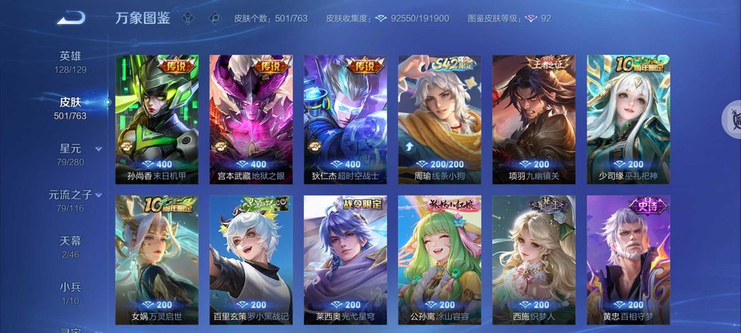 501皮肤❤️大耳狗小兵5无双2典藏❤️64传说花合斗真我赫兹❤️离烟恨螭龙剑怪盗基德诡秘之主满蛇年