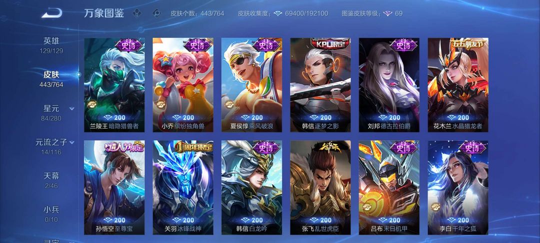装备描述:毁号,涉及毁坏虚拟财产罪及计算机安全罪,请文明游戏素质游戏,让我们共建美好租号平台 本游戏账号: 英雄多皮肤多。典藏皮肤1个感受典藏皮肤带来的优质体验快感FMVP皮肤1个尽情享受FMVP皮肤带来的主角光环 私人所属英雄皮肤有:李白 鸣剑·曳影杨戬 永曜之星孙尚香 末日机甲李白 凤求凰孙悟空 地狱火虞姬 启明星使伽罗 太华宫本武藏 地狱之眼貂蝉 猫影幻舞等等 注意事项: A.游戏过程中请不要恶意挂机或者不文明发言B.恶意挂机、顶号等行为将被拉黑无法再次下单C.进入游戏后中途请勿退出登陆,否则无法再次上号D.部分账号由于异地登录可能会出现密码错误提示,通常再尝试5-6次后可上号。 喜欢本账号请点 ☆收藏☆ 方便下次租用,谢谢光临惠顾