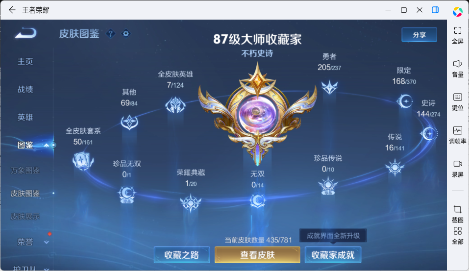 1典藏16传说144史诗168限定435皮肤 幻阙歌 武则天 蔷薇恋人