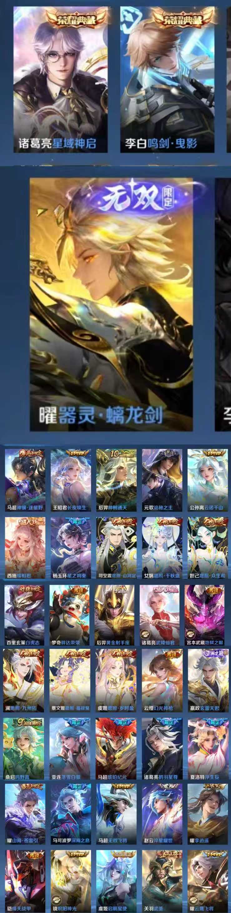 434皮肤2典藏1无双⭐星域神启⭐鸣剑曳影⭐器灵螭龙剑⭐神骥逐星野⭐长夜焕生⭐续相思⭐星之鸣奏⭐山河