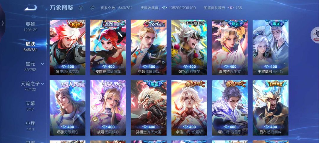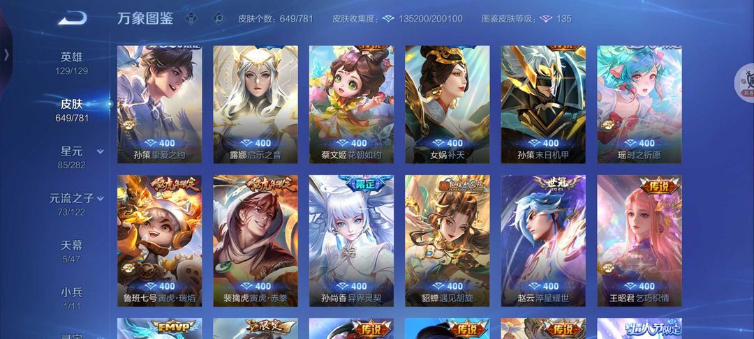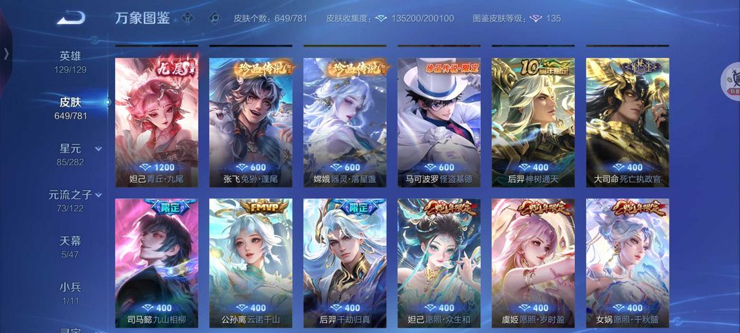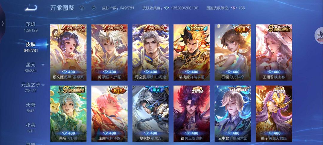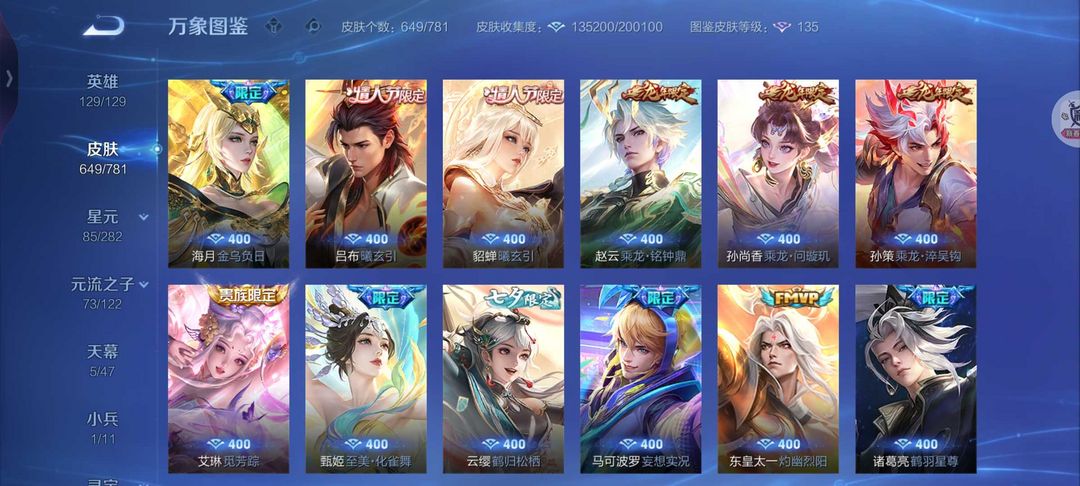 装备描述:649皮肤11典藏4无双皮❤青铜小兵螭龙剑离烟恨花合斗❤诡秘之主联动满蛇年限定皮满龙年❤