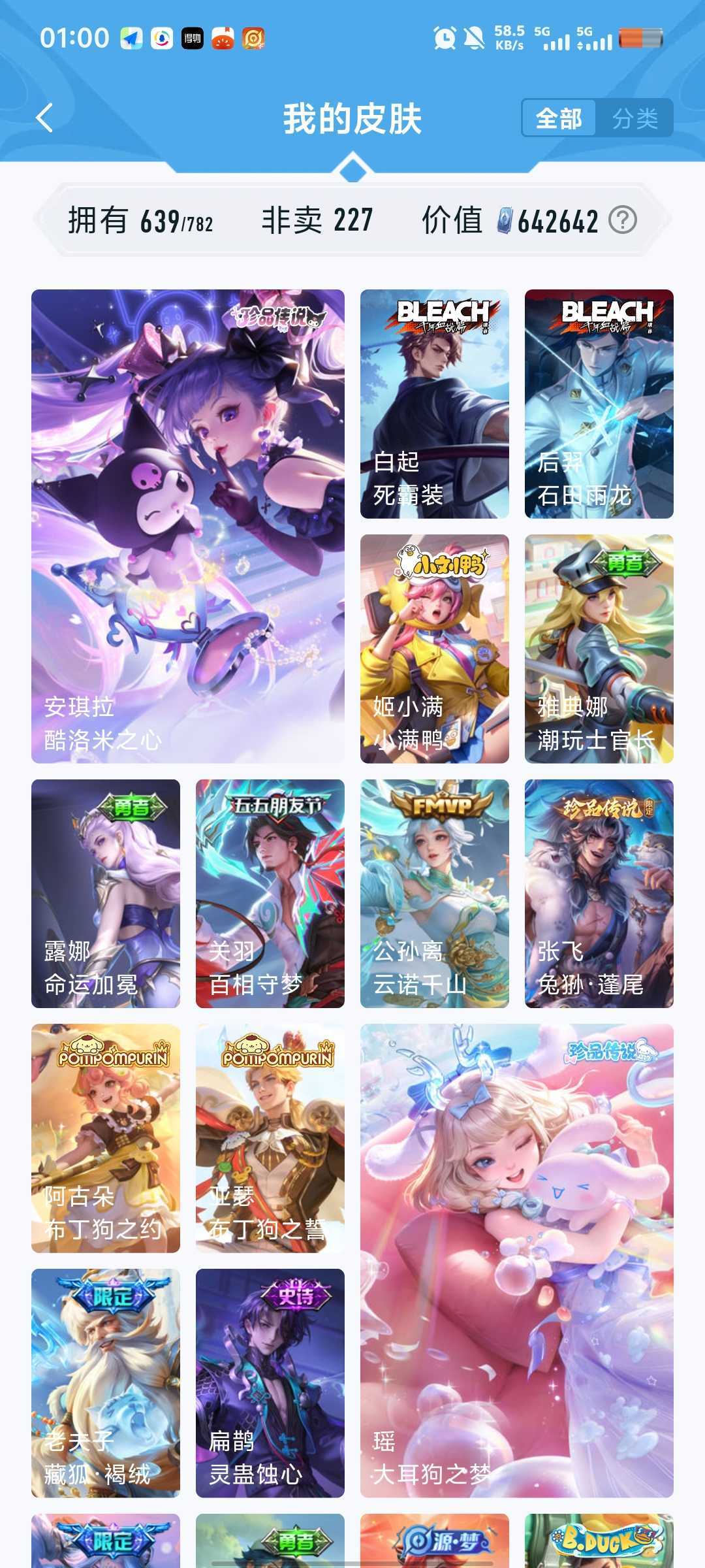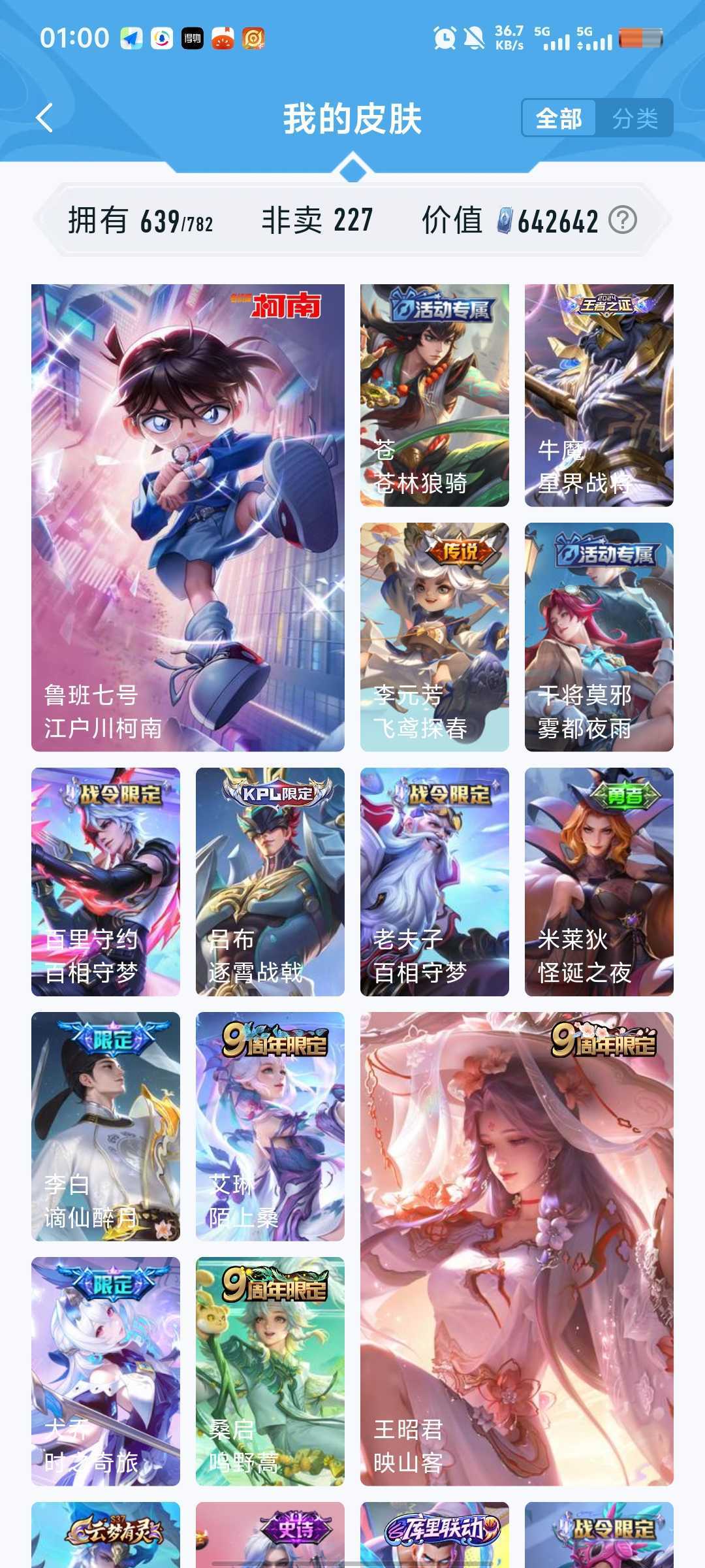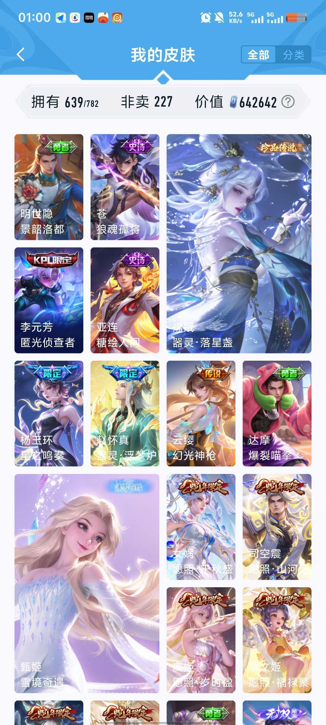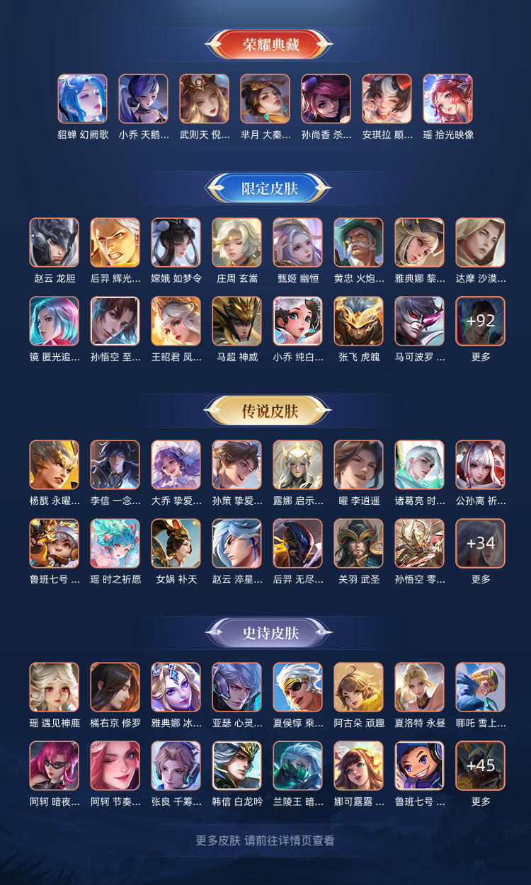 640皮5珍品传说7典藏安琪拉魔镜张飞兔狲酷洛米瑶大耳狗嫦娥落星盏鲁班柯南真我赫兹冰雪奇缘青丘九尾