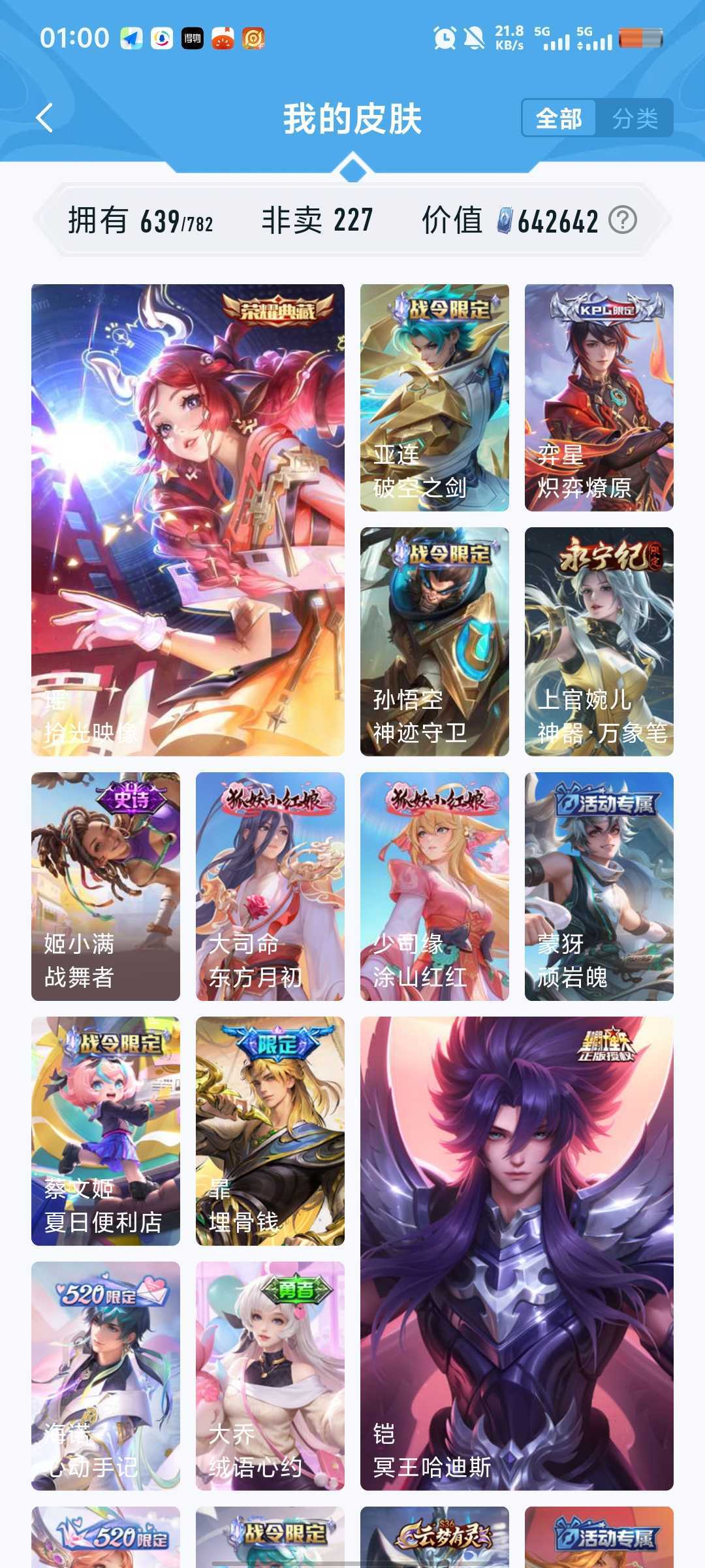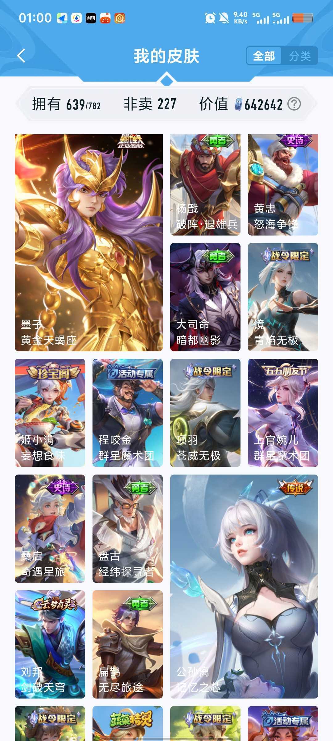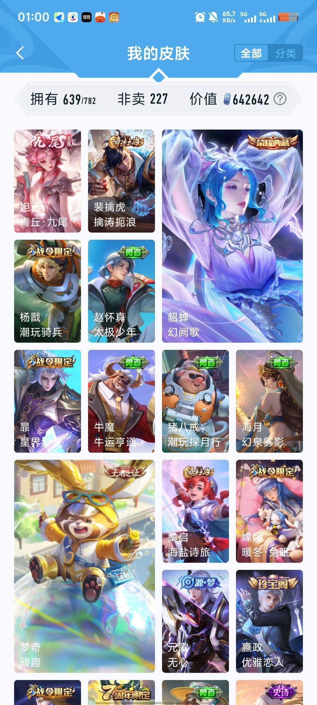 640皮5珍品传说7典藏安琪拉魔镜张飞兔狲酷洛米瑶大耳狗嫦娥落星盏鲁班柯南真我赫兹冰雪奇缘青丘九尾