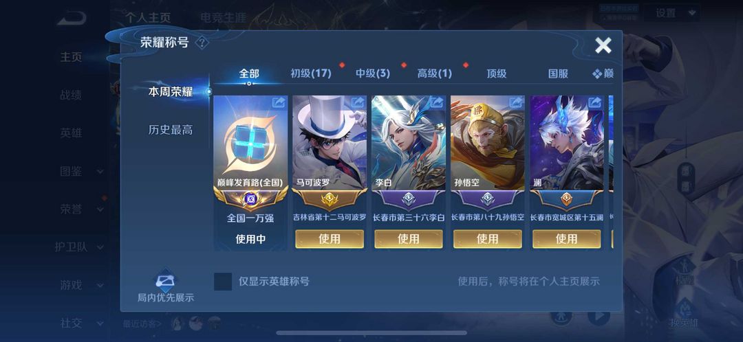 (禁玩巅峰赛)本周马可省标在榜,发育路万强,6典藏 6无双限定,历史小国标澜和李白,天魔缭乱/至尊宝