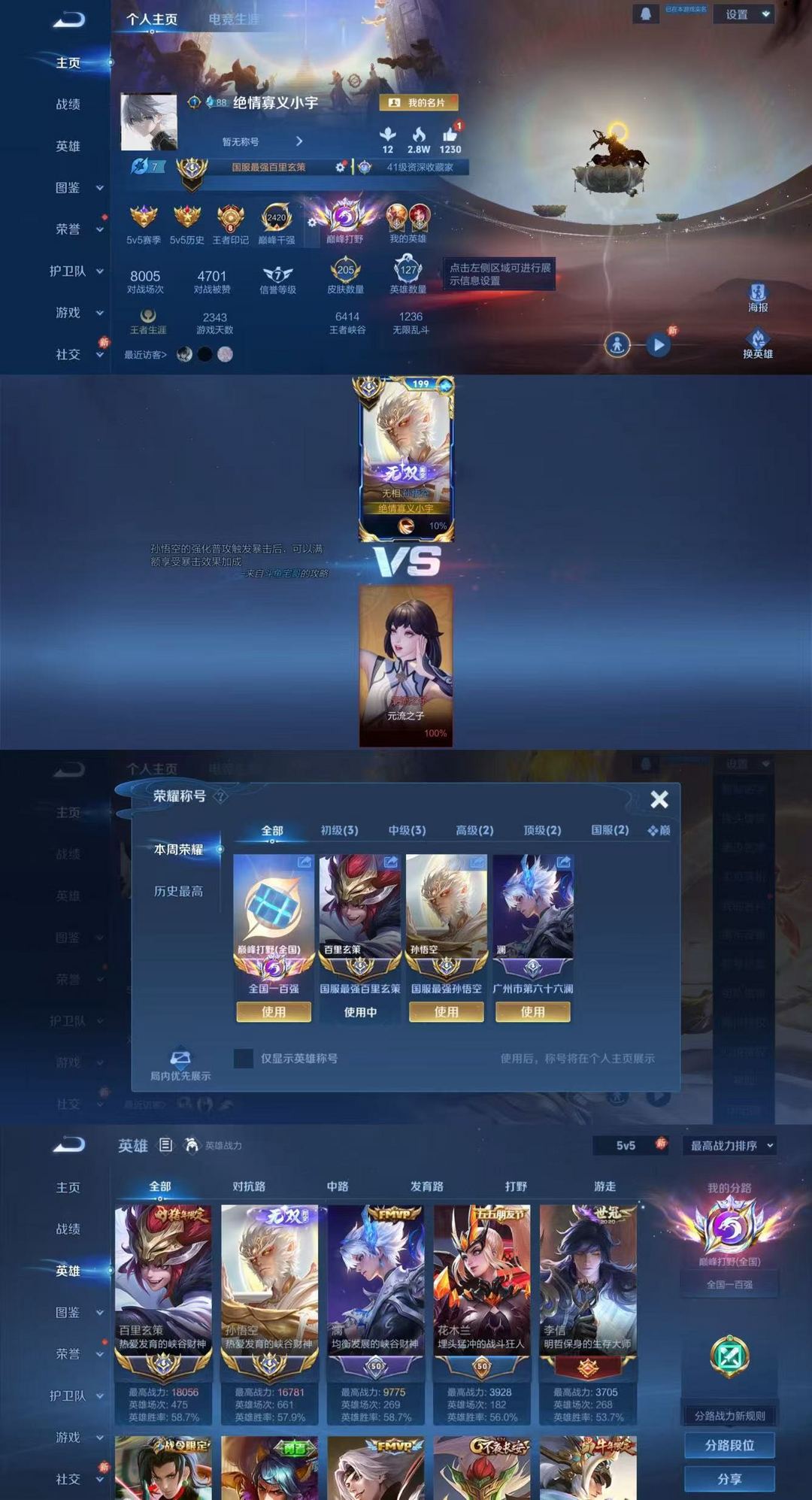 巅峰2420百强⭐3月正式服在榜双国服孙悟空玄策⭐无双白虎志限定⭐严禁巅峰