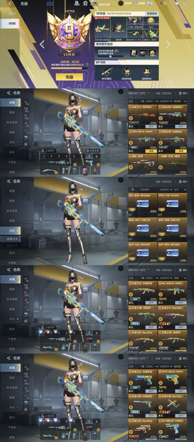 神壕新氪拉满♓三国全套全皮 王者蔷薇王者白虎王幻♈M200权✨雷霆王者套♒8至尊♓七核10cop