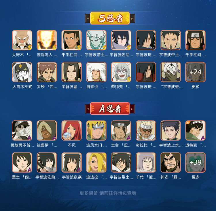 装备描述:忍者非常多,战力1400w+,绝对超值。配套齐全,熊猫二尾超时空等应有尽有,喜欢本账号请点 ☆收藏☆ 方便下次租用,谢谢光临惠顾!