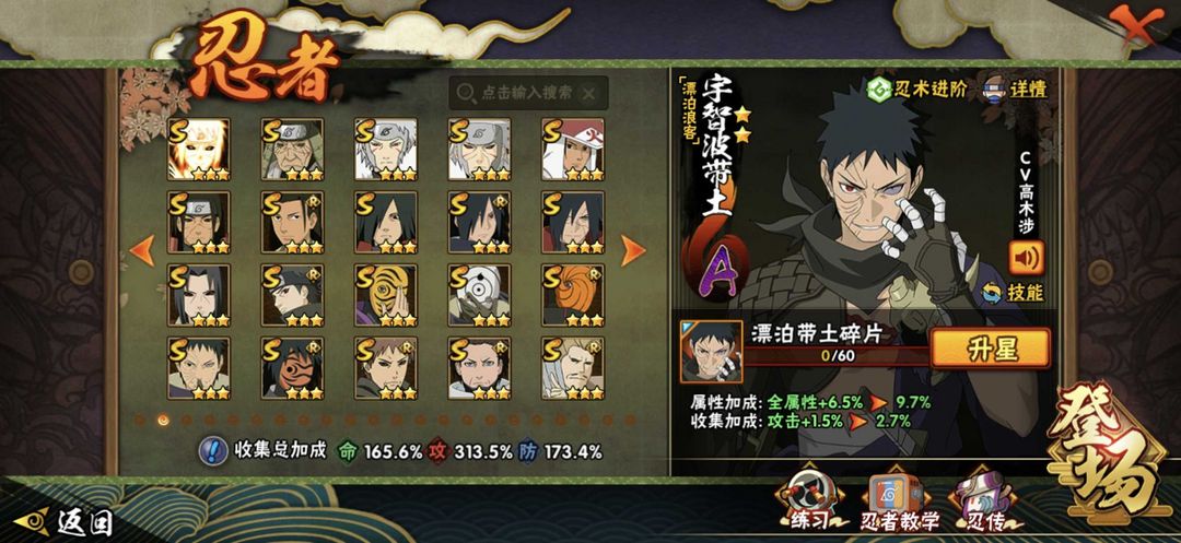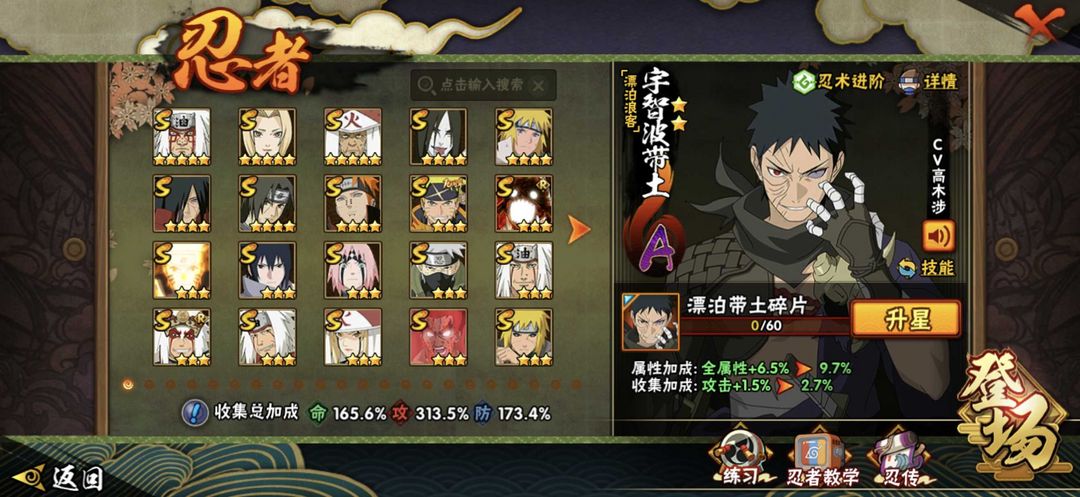 V区(高战)黑绝老三代,侠隐佐助。漂泊带土,54s 超多点券 A 忍 v14 十年高战账号