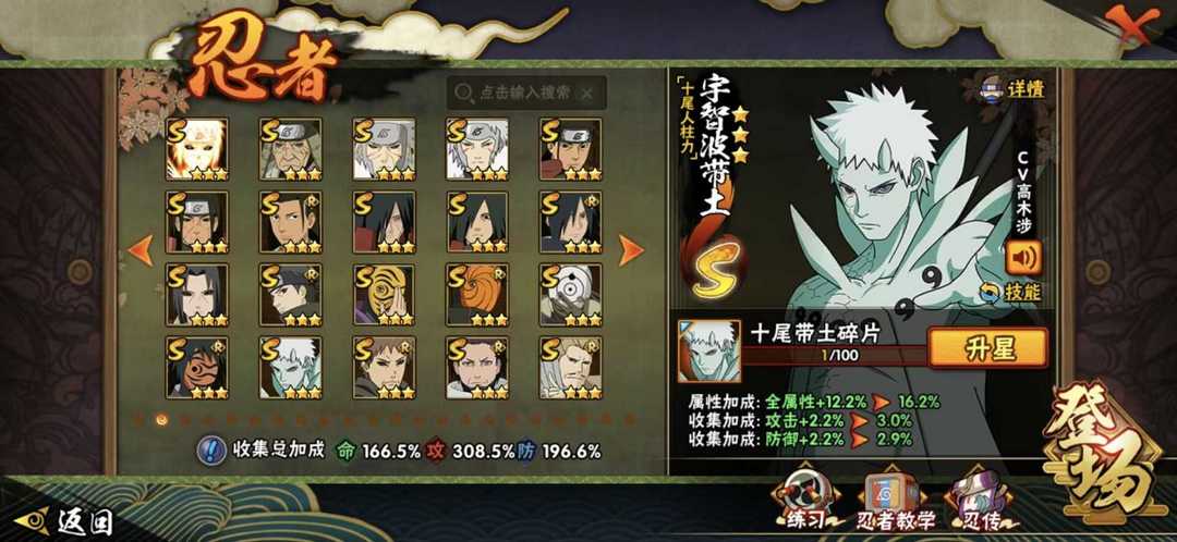 十尾带土♈54S♈全漂泊武士♈五影会谈斑♈须佐卡卡西♈暴怒六尾♈