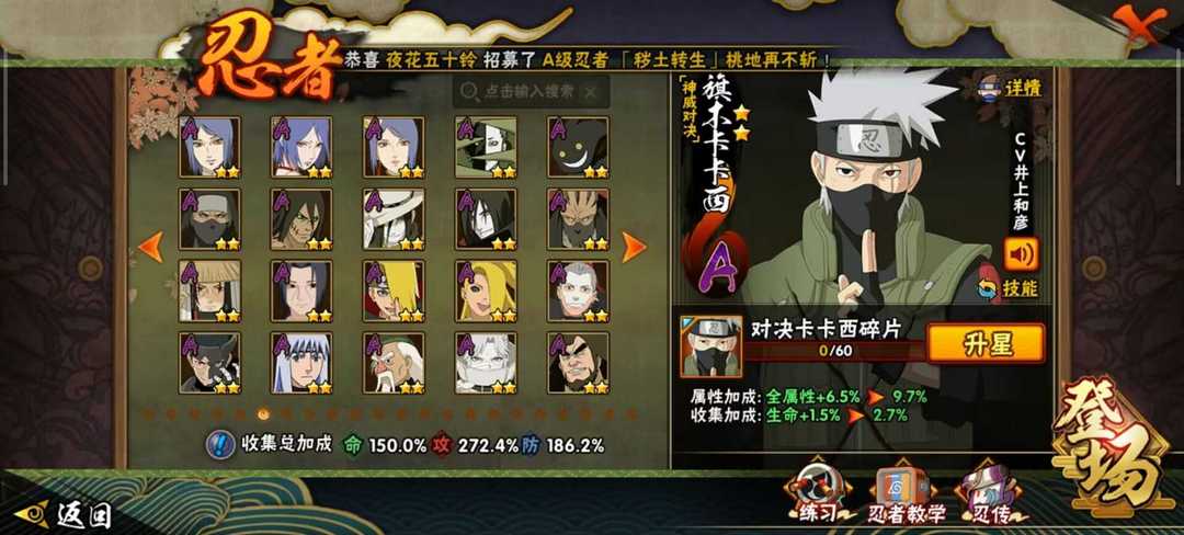 限制: 撤单率<30%才可租用此帐号装备描述:温馨提示: 最近很多人利用登录bug一直顶号,如遇顶号情况,重新登录顶回去即可,号主不会顶号 如果开挂我立即上报平台,永久封杀其账号,实名等信息,申请小号也没用 现在订单结束,平台会直接顶号,会显示“由于您解除平台授权,当前无法继续游戏,请重新登录”,并不是号主到点挤号! 秽土角度是决斗场忍者 登录不上订单超时系统会扣款,并不是号主问题! ⚠️⚠️注意:差评,恶意撤单,抓包一直顶号影响正常租客体验的一律全店铺拉黑,养号不易,我们都是有素质的人!!! 收藏能在第一时间享受后续出的忍者基本都会在第一时间秒,感兴趣可以收藏,订单结束满意麻烦给个好评非常感谢!请游戏局内保持文明,防止禁言影响他人游戏,祝您玩得愉快