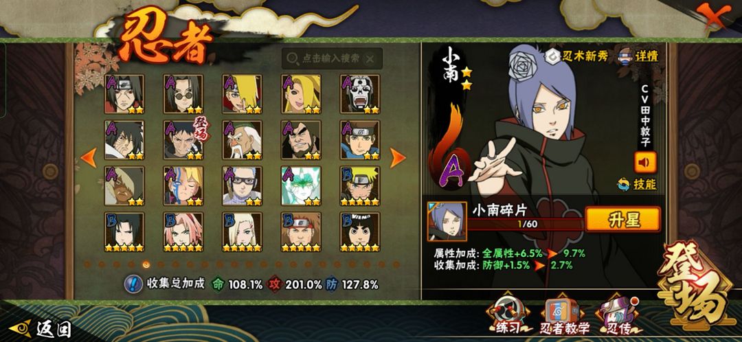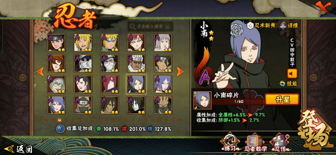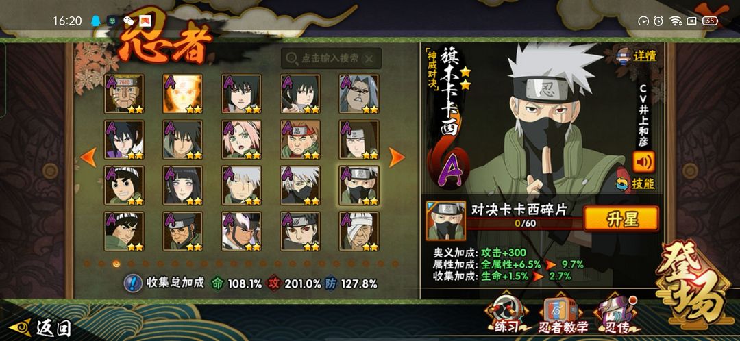 装备描述:欢迎来到超影租号小店,火影能带来快乐也你带来自闭。有梦想你也许就是火影忍者下个超影♥ 账号如标题。忍者看上图。不要动金币跟高招卷。 。账号可以段位赛。安卓区。 喜欢的话点收藏。 祝你游戏愉快O∩_∩O