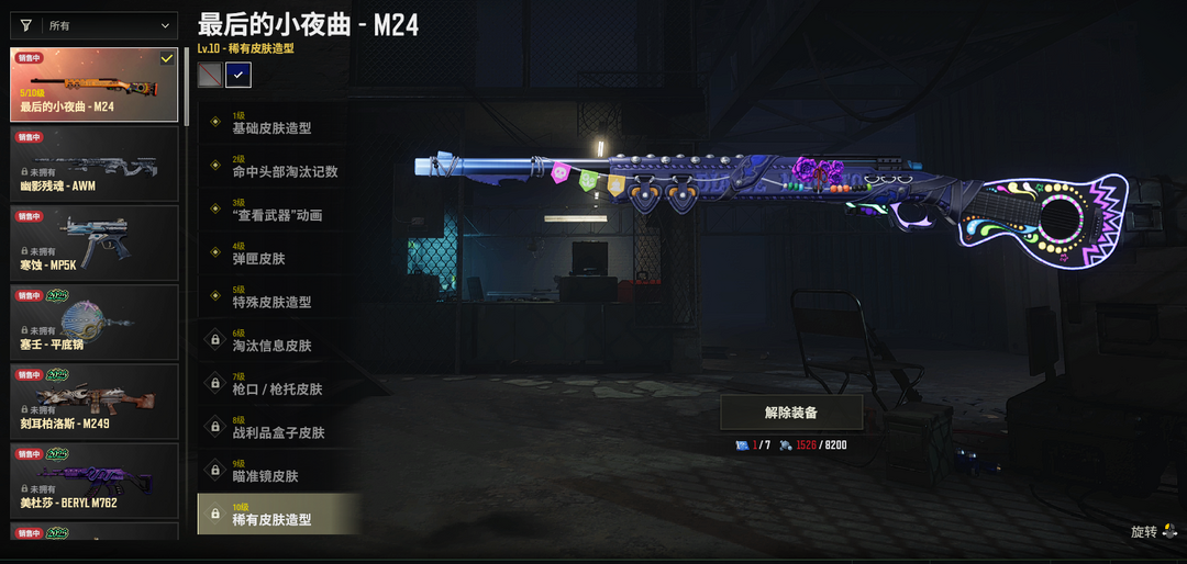 ⑤级小夜曲M24✅异色M24✅聚变熔岩M4✅聚变熔岩SKS✅钴蓝SLR✅铃儿响叮当98K✅湮灭M24