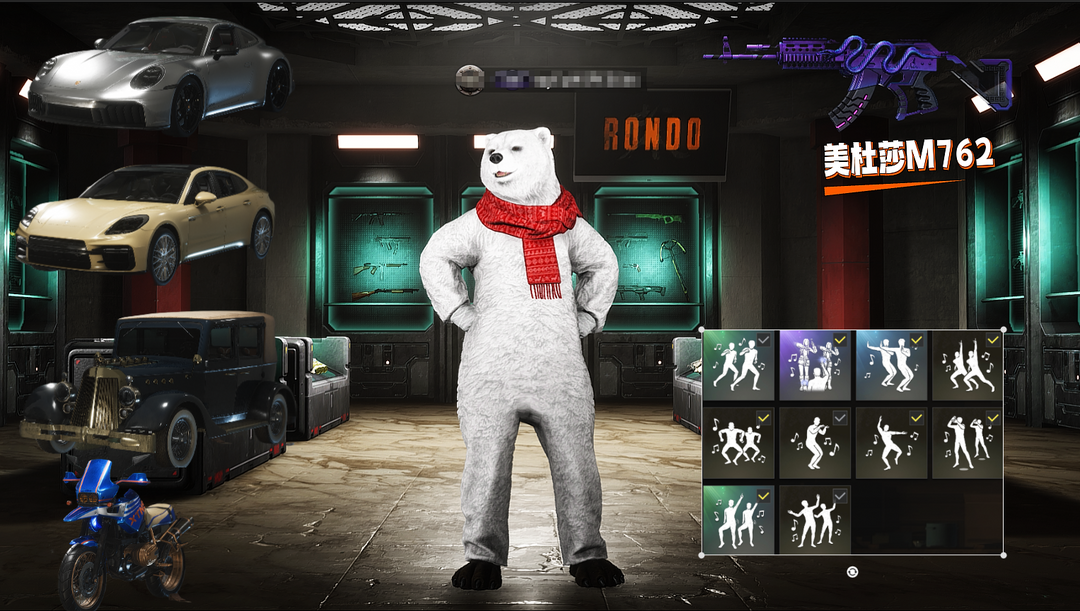装备描述:二级密码123456/保时捷911跑车+轿跑✌阿斯顿马丁跑车✌美杜莎M762✌圣诞之子套✌白熊套✌类星之王套装✌金色成就M762✌青龙ACE✌青花MINI14✌蟒蛇AKM✌迷彩M416✌悲喜柏林套